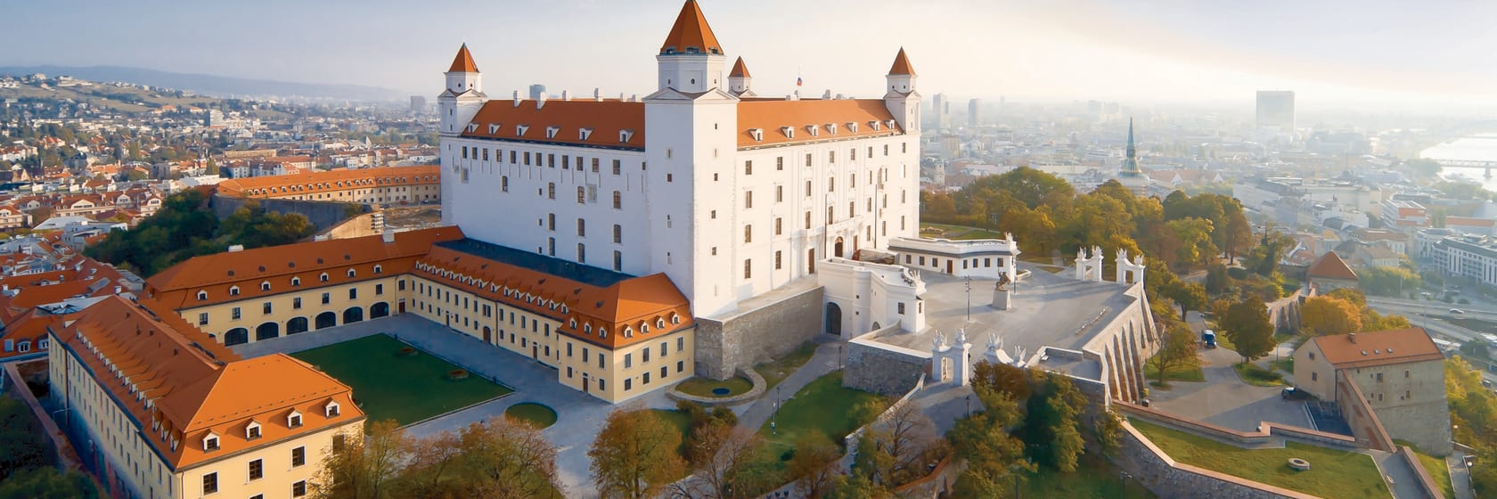 Vi möts av vår svensktalande guide på flygplatsen i Wien, där en chartrad buss väntar på att ta oss till Slovakiens charmiga huvudstad, Bratislava. Under en panoramatur med buss får vi en första introduktion till staden och gör ett stopp vid slottskullen. Härifrån bjuds vi på en storslagen utsikt över Donau och stadens takåsar. Vi får också möjlighet att promenera i den vackra barockträdgården vid Bratislavas slott.