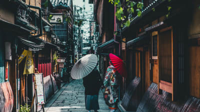 Gion: Kyotos geishadistrikt, där du kan se traditionella träbyggnader och kanske få en glimt av en maiko (lärling-geisha).