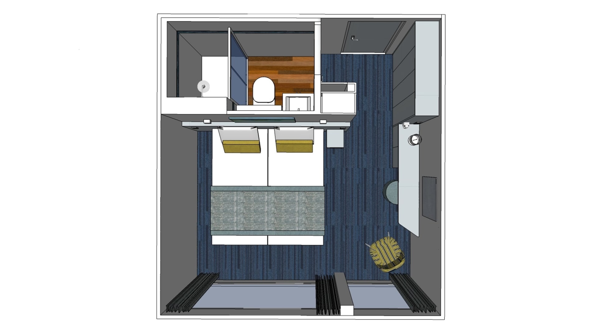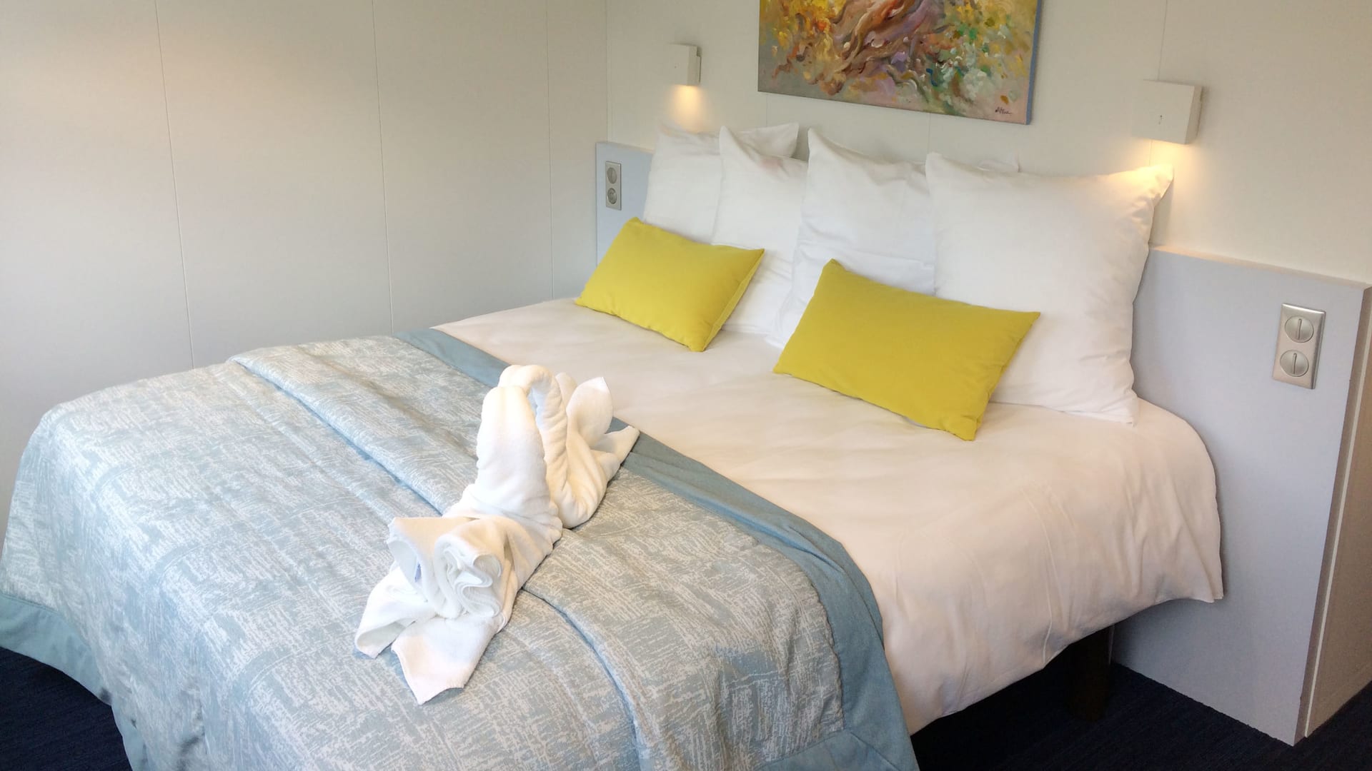 Rymlig hytt med stort öppningsbart fönster, separata sängar & badrum med dusch. Hytten är utrustad med TV, värdeskåp, WiFi, hårfön & garderob.