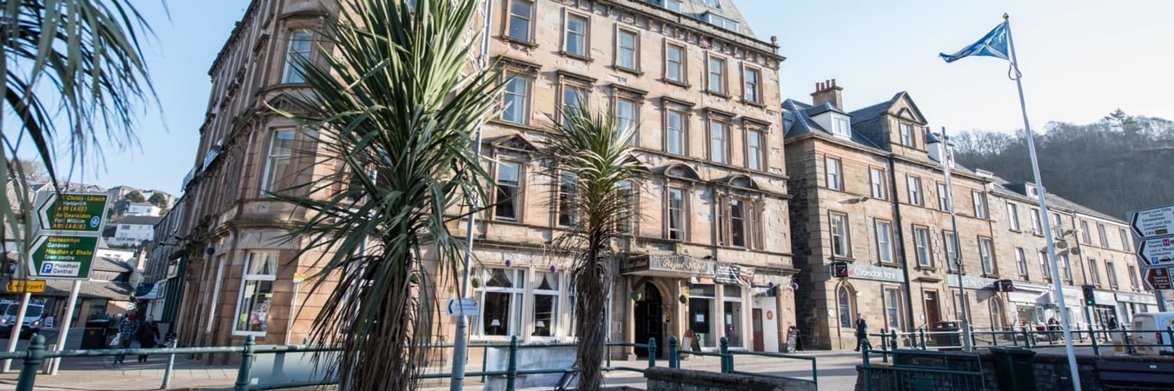 The Royal Hotel ligger bara 500 meter från Obans järnvägsstation och Obans färjeterminal. Rummen på Royal Hotel har traditionell inredning, många med möbler eller gardiner med skotskrutigt mönster. Hotellet byggdes 1895 och restaurangen har fortfarande inslag som höga tak och stora fönster från den ursprungliga byggnaden. Från restaurangen har du utsikt över staden. Alla rum har TV, gratis WiFi och eget badrum.