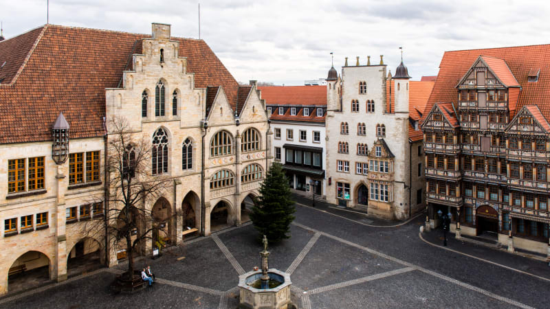 Ca 52 mil fr Malmö & 79 mil fr Göteborg.Marktplatz i Hildesheim med Rolandsbrunnen. Foto: Anneli Skåreby