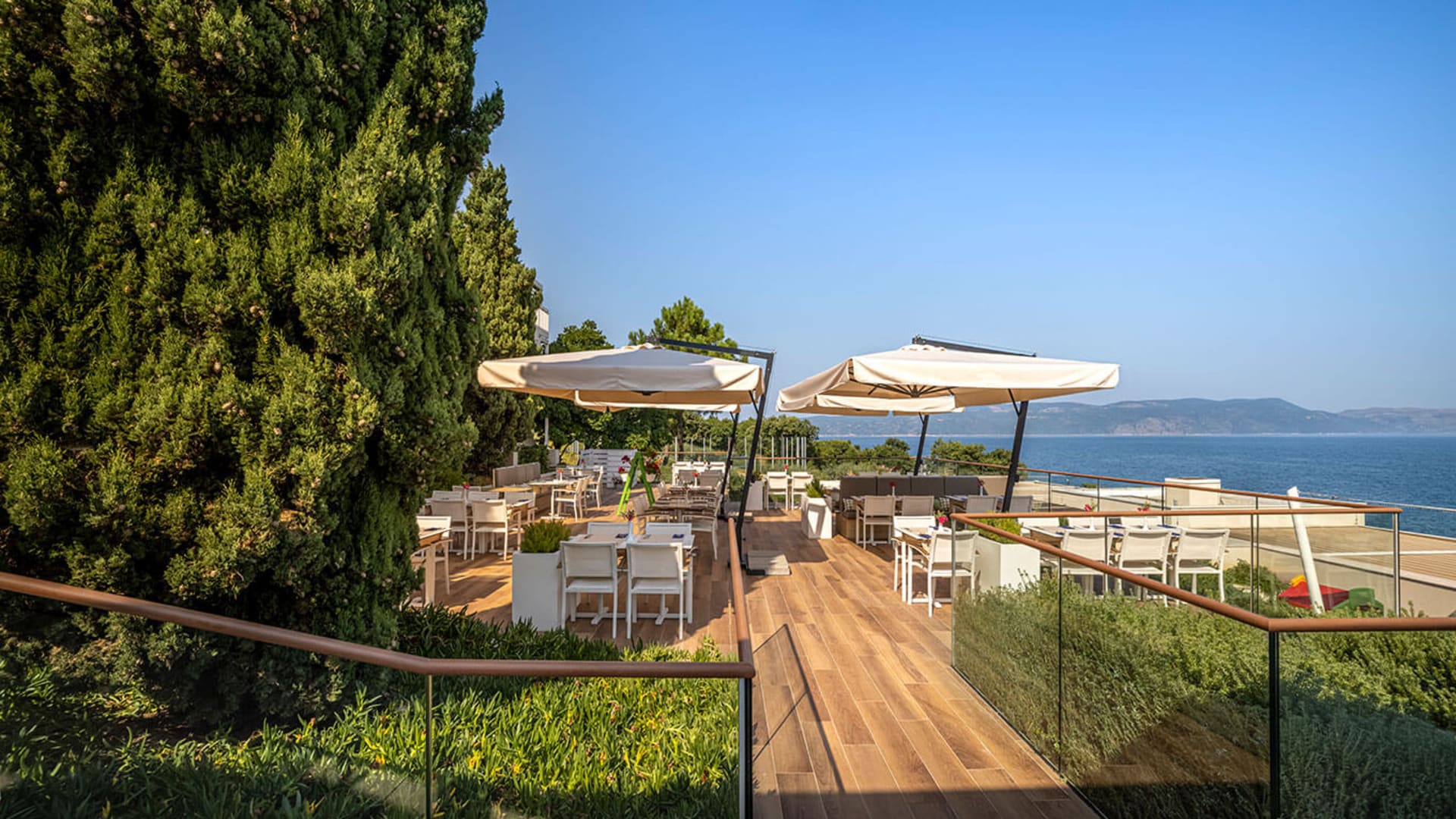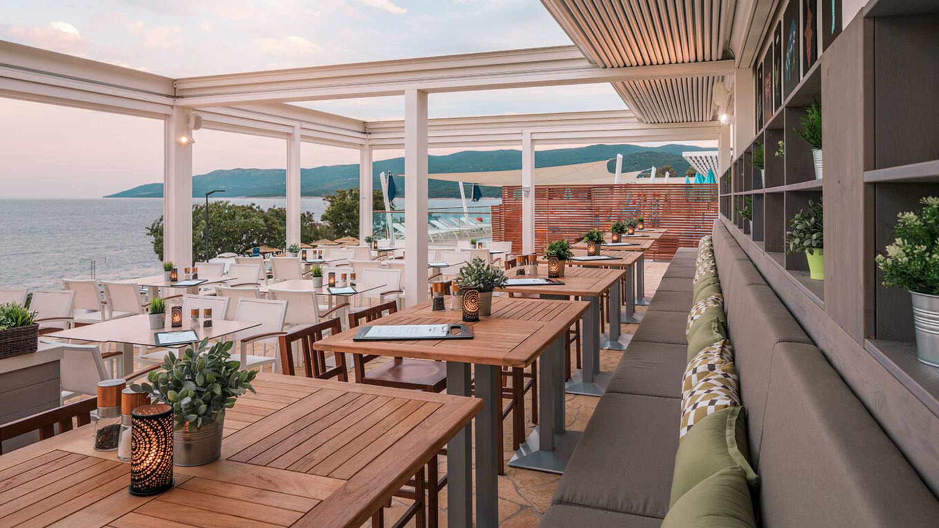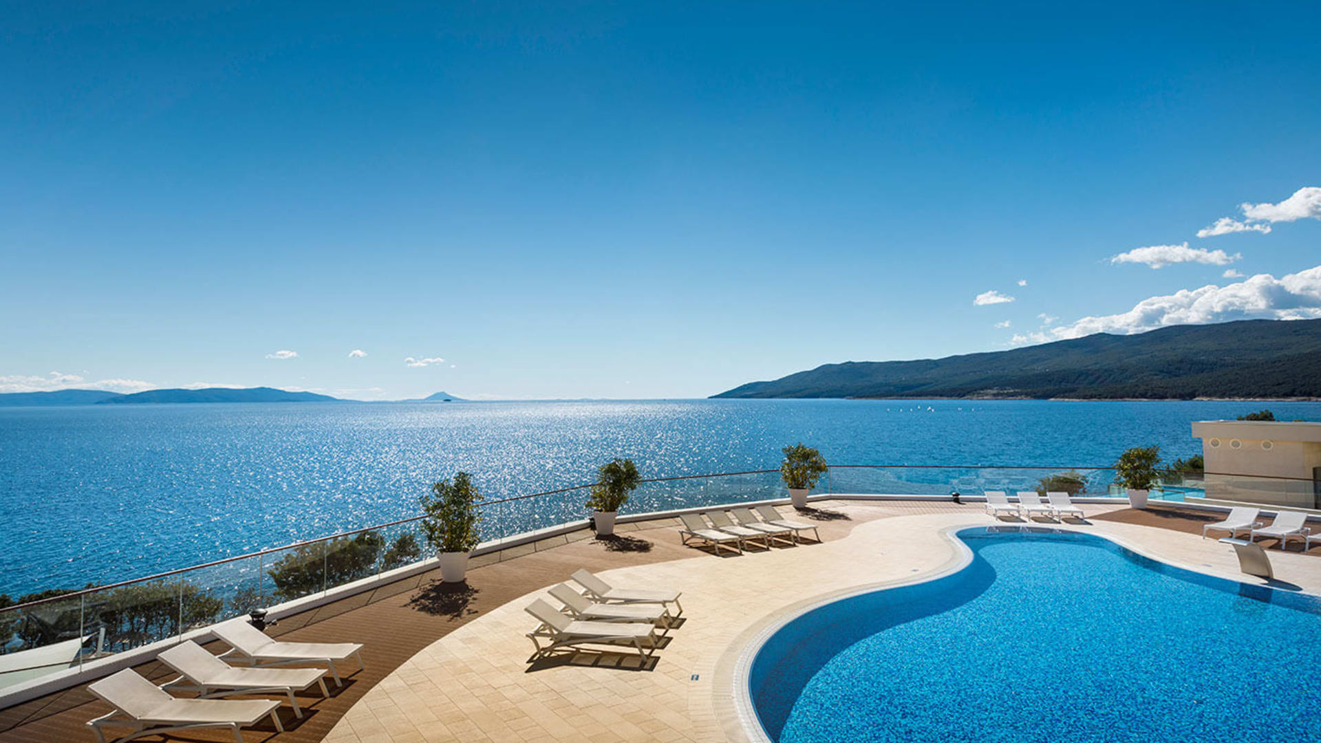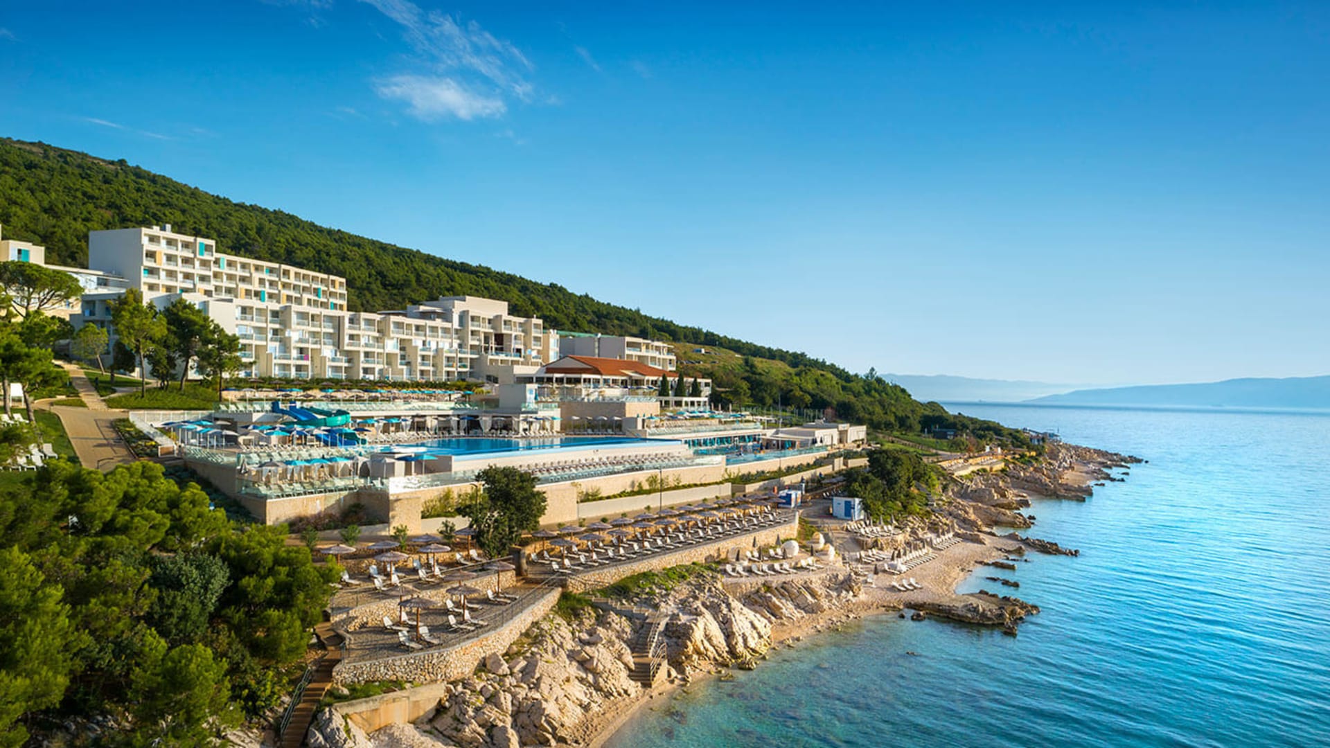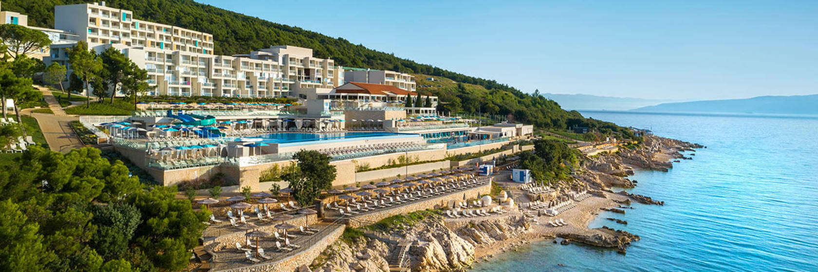 Valamar Bellevue Resort är ett 4-stjärningt hotell med 372 rum, beläget på sluttningen ovanför Rabacs stenstrand med panoramavy över Kvarnerviken.