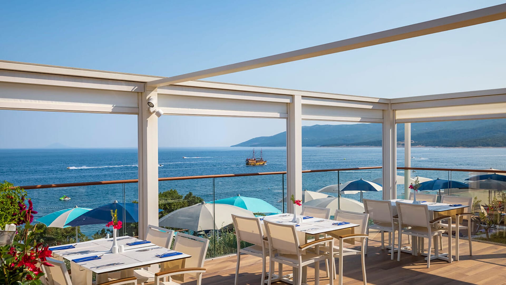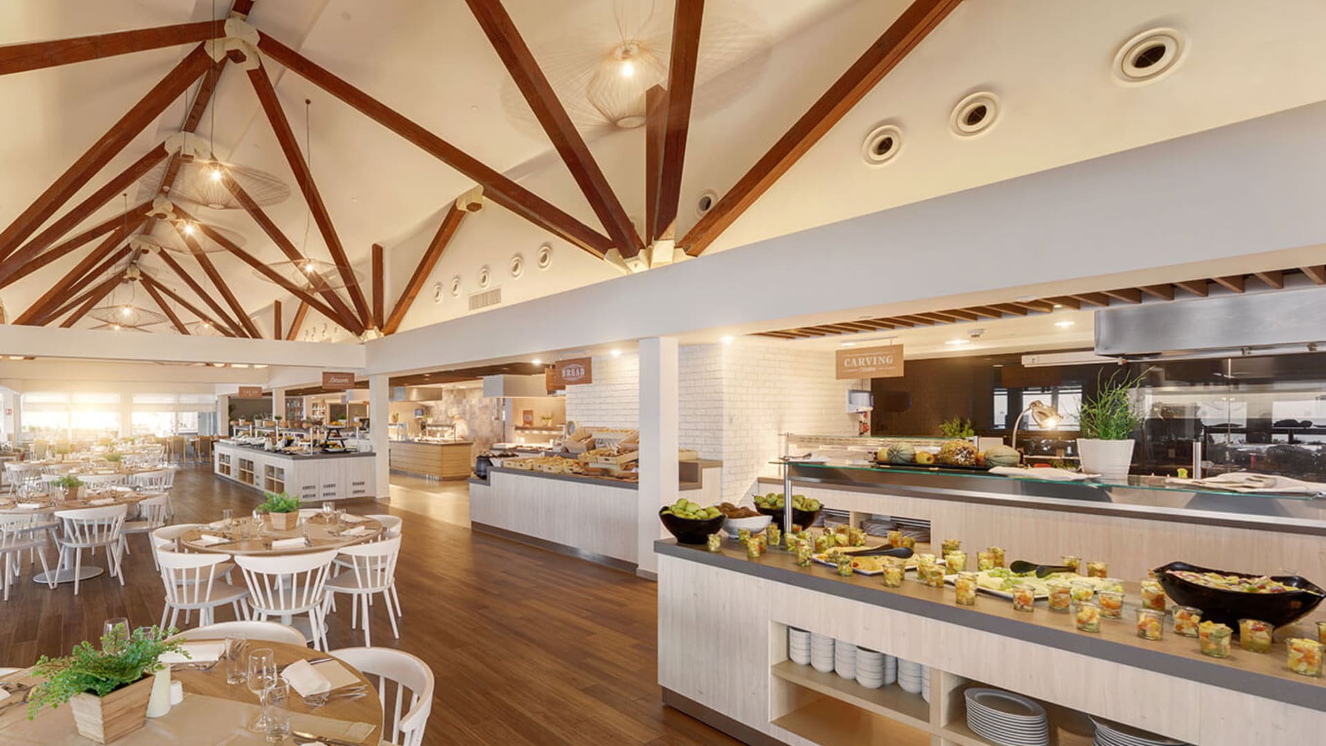 Mat & dryck: Bufférestaurang, à la carte (grill & taverna), lobby‑bar, pool‑ och beach‑bar samt vinbar