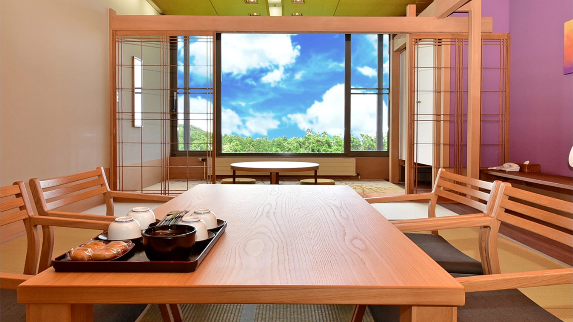 Här erbjuds japanskinspirerade rum med utsikt över golfbanan och naturen, inklusive rum med traditionell tatami och futon samt vissa med västerländska sängar högst upp.